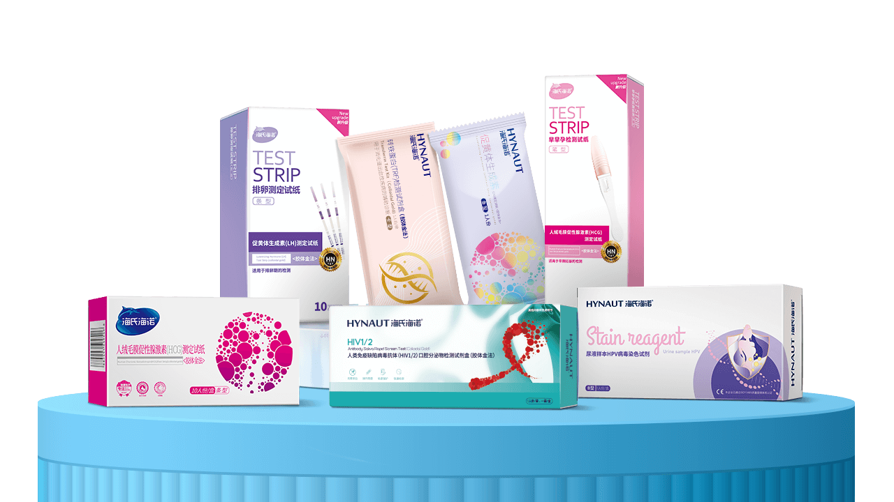 海氏海諾試紙檢測的產(chǎn)品,操作簡便快速、結(jié)果直觀易讀、特異性較高、成本低、便于攜帶和現(xiàn)場檢測。產(chǎn)品包含:早孕試紙、早早孕試紙、排卵試紙、尿常規(guī)試紙、HPV病毒染色試劑、HIV測試等產(chǎn)品。